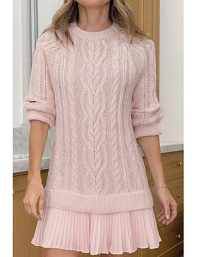 Damen Pullover Pullover Kleid Elegant Lässig Weich Einfarbig Gerippt Rundhalsausschnitt Patchwork Gestrickt Langarm Lange Oberteile Stricken Outdoor Täglich Wochenende Schwarz Rosa Herbst Winter