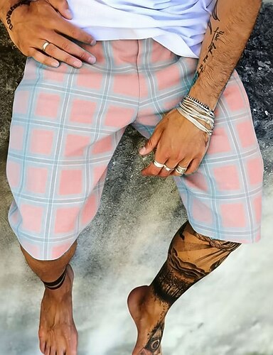 Herren Geometrisch Karo / Karomuster Sweat-Shorts Strandshorts Frottee-Shorts Mittlere Taille Modisch lässig Täglich Streetwear Ferien 3D-Druck Elastischer Kordelzug in der Taille Designer Bekleidung