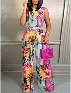 Damen Normal Overall Elegant Blumen Ärmellos Weites Bein Rundhals Druck Täglich Urlaub Normale Passform Blau Schwarz Rosa Sommer