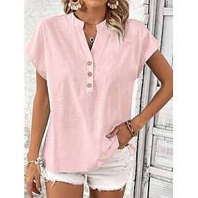 Damen T Shirt T-Shirt Knöpfe Einfach Mode Stilvoll Klassisch Dreiviertelarm Rundhalsausschnitt Normale Oberteile Täglich Ausgehen Wochenende Blau Schwarz Weiß Rosa Rote Sommer Frühling Herbst
