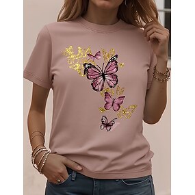 Damen T Shirt Druck Grafik Tiermotiv Schmetterling Vintage Stilvoll Klassisch Kurzarm Rundhalsausschnitt Rundhals Normale Oberteile Täglich Wochenende Weiß Rosa Himmelblau Violett Purpur Sommer