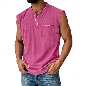 Herren Leinenhemd Tank Top Weste Unterhemd Ärmellos Henley Sommer Frühling Einfach Mode Designer Basic Tasche Knöpfe Lässig Urlaub Straße Schwarz Rosa Marineblau Top T-Shirt für Herren