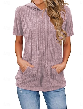 Damen Bluse Tasche Einfarbig Vintage Stilvoll Lässig Kurzarm Mit Kapuze Normale Oberteile Täglich Blau Schwarz Rosa Rote Dunkelgrün Sommer Frühling
