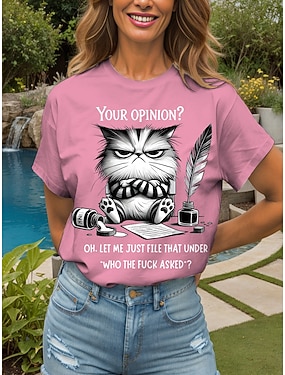 Damen T Shirt Druck Katze Lässig Kurzarm Rundhals Normale Oberteile Täglich Blau Rosa Grün Sommer
