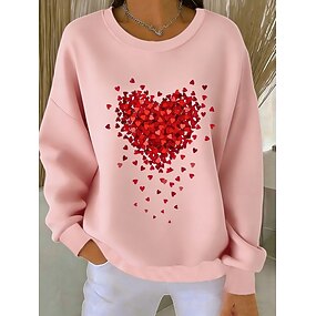 Valentinstag Damen T Shirt Druck Herz Grafik Vintage Stilvoll Lässig Langarm Rundhalsausschnitt Normale Oberteile Täglich Wochenende Rosa Rote Frühling Winter
