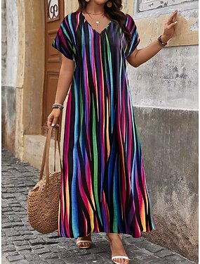 Damen Maxikleid Freizeitkleid T-Shirt-Kleid A Linie Kleid Mode Modern Täglich Urlaub Ausgehen Lässiger Schnitt Gestreift Kurzarm V Ausschnitt Blau Rosa Rote Purpur Sommer Frühling