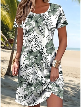 Damen Minikleid Sommerkleid T-Shirt-Kleid A Linie Kleid Urlaub Lässig Outdoor Strand Ausgehen Normale Passform Blumen Grafik Kurzarm Rundhalsausschnitt Blau Rote Grün Sommer Frühling