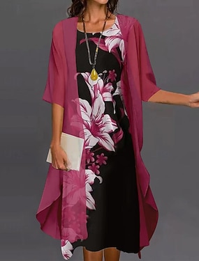 Damen Rock-Sets Dreiviertelarm Glockenärmel Rundhalsausschnitt Blumen Druck Mode Streetwear Alltagskleidung Date Blau Rote Purpur Frühling Normale Passform