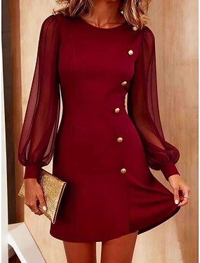 Damen Minikleid schwarzes kleid Chiffonkleid Elegantes Kleid Elegant Mode Klassisch Täglich Outdoor Büro Normale Passform Einfach Langarm V Ausschnitt Schwarz Rote Grün Sommer Frühling