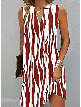 Damen Minikleid Shiftkleid Lässig Straße Ferien Normale Passform Grafik Gestreift Ärmellos V Ausschnitt Blau Schwarz Rote Grün Sommer Frühling Herbst