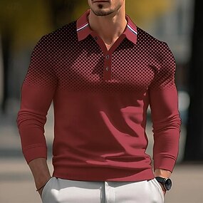 Herren Punkt Geometrisch Polo Langarm Polo-Shirts Hemden mit Kragen Lässig Outdoor Athleisure 3D-Druck Knöpfe Frühling Herbst Winter Schwarz Weiß Rote