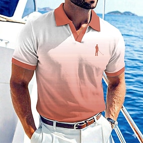 Herren Ombre Hawaiianische Polohemden Kurzarm Polo-Shirts V Ausschnitt Lässig Resort Athleisure Alltagskleidung Urlaubskleidung Frühling & Sommer Blau Meerblau Rote
