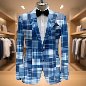 Herren Karomuster Blazerjacke Mantel Mode Bequem Atmungsaktiv Künstlerisch Lässig Täglich Party-Abendmode Tasche 3D-Druck Knöpfe Ganzjahres Fallendes Revers Langarm Blau Purpur Grün