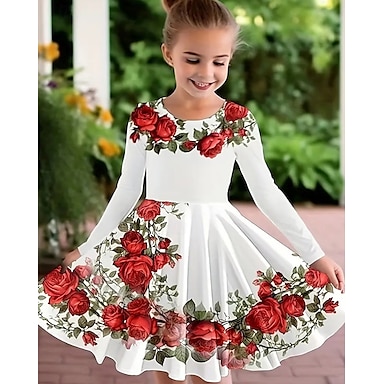 Ostern Mädchen' 3D Blumen Graphic Kleid Langarm Sommer Frühling Urlaub Täglich Festtage Schön Süß kinderkleidung 4-12 Jahre Casual kleid A Linie Kleid Knielang Regular Fit