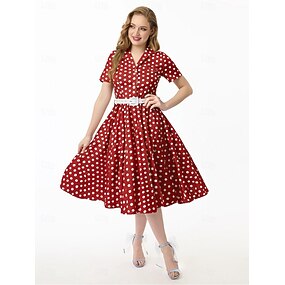 Retro Vintage 1950er Rockabilly Midlänge Swing-Kleid Ausgestelltes Kleid Hemdkleid Passform und Flare Tupfen Kostüm Damen Maskerade Urlaub Lässig Retro-Mottoparty Erwachsene Kleid Frühling & Sommer