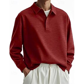 Herren Polo Poloshirts Lässig Straße Revers Langarm Basic Modern Einfach Knöpfe Frühling Herbst Normale Passform Blau Schwarz Weiß Hellgrün Rote Marineblau Polo