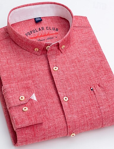 Herren Hemd Leinenhemd Kleidhemd Durchgeknöpft Hemd Farbblock Täglich Geschäft Blau Hellblau Weiß Rote Langarm Umlegekragen Ganzjahres Bekleidung