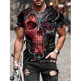 Herren Skelett Gothic T Shirt Kurzarm T-Shirt 3D-Druck Rundhalsausschnitt Hemd Übertrieben Designer Künstlerisch Straße Lässig Täglich Schwarz Rote Blau Sommer Frühling Ganzjahres Bekleidung S M L XL