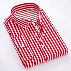 Herren Oberhemd Hemd Gestreiftes Hemd Kragenhemd Hochzeit Arbeit Schwarz Weiß Rote Marineblau Langarm Kragen Bekleidung