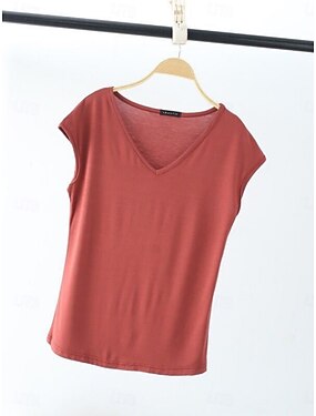 Damen T Shirt T-Shirt Einfach Mode Stilvoll Klassisch Kurzarm V Ausschnitt Normale Oberteile Täglich Ausgehen Wochenende Blau Schwarz Weiß Rosa Rote Sommer Frühling