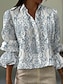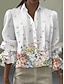 Damenhemd Leinenähnlich Atmungsaktiv Leicht Floral Grafik Elegant Bohemia Vintage Lange Ärmel Hemd Kragen Reguläre Tops Alltag Arbeit Urlaub Rüschen Blau Weiß Orange Beige Sommer Frühling