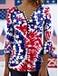 Unabhängigkeitstag Patriotische Damen Bluse Grafik Flagge Elegant Stylisch 3/4 Ärmellänge Crewneck Lange Oberteile Täglich Ausgehen Rüsche Knöpfe Blau Rot Sommer Frühling