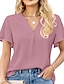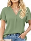 Damen Bluse Rüsche Lochmuster Einfarbig Stilvoll Lässig Kurzarm V Ausschnitt Normale Oberteile Täglich Blau Weiß Gelb Rosa Grün Sommer