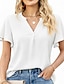 Damen T Shirt T-Shirt Rüsche Einfach Mode Stilvoll Klassisch Halbarm V Ausschnitt Normale Oberteile Täglich Ausgehen Wochenende Schwarz Weiß Rosa Marineblau Kamel Sommer Frühling