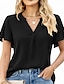 Damen Hemd Sommerhemd Freizeithemd Chiffon Tops Rüsche Einfarbig Einfach Elegant Urlaub Mode Kurzarm V Ausschnitt Normale Oberteile Täglich Ferien Ausgehen Blau Schwarz Weiß Hellgrün Rosa Sommer