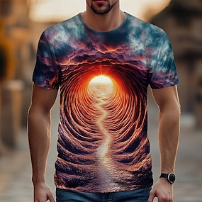 Herren Grafik Optische Täuschung Hemd T Shirt Kurzarm T-Shirt 3D-Druck Rundhals Hemd Basic Täglich Blau Grün Rosenrot Bekleidung Normal S M L XL 2XL 3XL 4XL