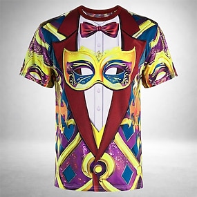 Herren Optische Täuschung Maske Smoking T Shirt Kurzarm T-Shirt 3D-Druck Rundhalsausschnitt Hemd Übertrieben Designer Täglich Club Party Gelb Purpur Sommer Frühling Ganzjahres Bekleidung S M L XL XXL