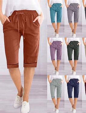 Damen Capri-Shorts Baumwoll Mischung Chinos Sommerhose Mode Wadenlang Natürliche Taille Einfach Seitentaschen Baggy Komfort Unelastisch Alltagstauglich Blau Schwarz Weiß Rote Sommer Frühling Herbst