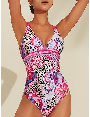 pinkfarbener Dschungelparty-Stretch-Einteiler-Badeanzug