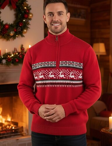 Herren Weihnachtspullover Pullover Pullover mit Viertelreißverschluss Strickpullover Gerippt Stricken Normale Oberteile Gestrickt Viertel Postleitzahl Jeder Viertelreißverschluss Mode Basic