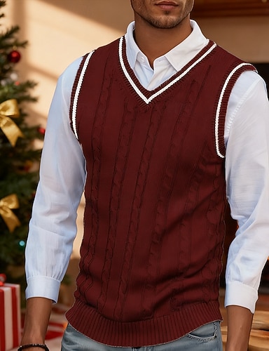 Herren Weihnachtspullover Pullunder Kleid Pullover Pullover Weste Gerippt Zopfmuster Stricken Normale Oberteile Gestrickt Einfach V Ausschnitt Mode Lässig Urlaub Alltagskleidung Bekleidung Herbst
