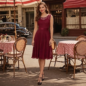 Elegant 1950er Vintage inspiriert Knielang Kleid A-Linie Kleid Teekleid Spitze A-Linie Kostüm Damen Weihnachten Karneval Neujahr Heimkehr Alltagskleidung Junggesellinnenabschiedsparty Erwachsene