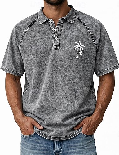 Herren Poloshirts Hemd aus 100 % Baumwolle in Säurewaschung Lässig Ferien Revers Kurzarm Mode Basic Palme Knöpfe Jahrgang Frühling & Sommer Blau Rote Purpur Braun Grün Grau Poloshirts