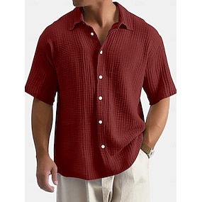 Herren Hemd Sommerhemd Strandbekleidung Seersucker-Shirt Einfarbig Urlaub Straße Schwarz Weiß Wein Marineblau Kurzarm Hemdkragen Sommer Frühling Bekleidung Tasche
