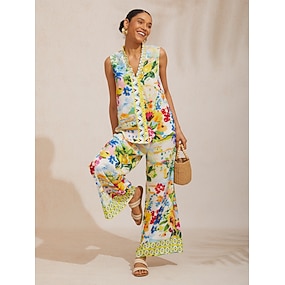 Damen Hosen-Sets Halbarm Schmetterling Rundhals Blumen Grafik Elegant Urlaub Lässig Täglich Blau Rosa Purpur Frühling & Sommer