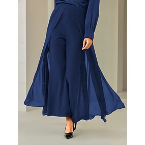 Palazzohose für Damen, schwarz, lange Länge, Chiffon, hohe Elastizität, elegant, lässig, alltagstauglich, Frühling, Sommer, Herbst