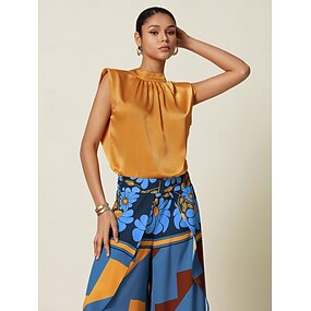 Ärmellose, hochgeschlossene Bluse aus Satin