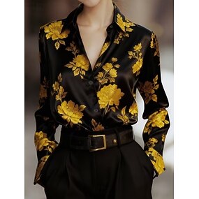 Damen Hemd Knöpfe Druck Blumen Grafik Elegant Stilvoll Basic Langarm Hemdkragen Normale Oberteile Täglich Arbeit Blau Gelb Frühling Herbst