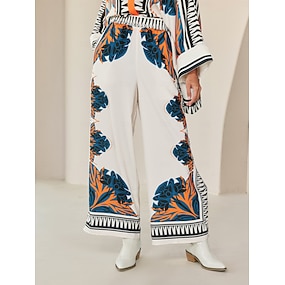 Damenhose Satin weites Bein Maxi locker Bohemien Urlaub lässig täglich Frühling Sommer Herbst