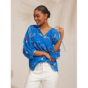 Damen Weiblich Durchgeknöpft Hemd Freizeithemd Lässig Marineblau Knöpfe 3/4 Ärmel Elegant Bohemien Hemdkragen Frühling Herbst Ganzjahresmode