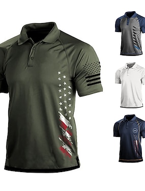 4. Juli 2026 250. Herren Amerikanische US-Flagge Golf Sport-Poloshirts Kurzarm Polo-Shirts Hemden mit Kragen Lässig Athleisure Festival-Outfit Knöpfe Sommer Frühling Blau Weiß Rote