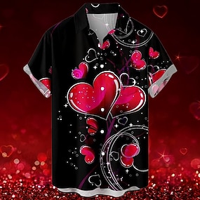 Valentinstag Herz romantisch Herren Resort hawaiianisches 3D-gedrucktes Hemd mit Knopfleiste, kurzärmelig, Sommer, Strand, Urlaub, Alltagskleidung, S bis 3XL
