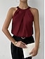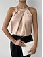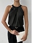 Damen Elegant Satin-Top Satinhemd Camp-Kragenhemd Gerafft Einfarbig Stilvoll Basic Lässig Ärmellos Neckholder Normale Oberteile Täglich Ferien Ausgehen Schwarz Weiß Champagner Wein Grün Sommer