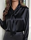 Damen Satinhemd Kleidhemd Bluse Einfarbig Elegant Vintage Mode Langarm Wasserfallausschnitt Normale Oberteile Täglich Arbeit Party Schwarz Rosa Rote Grün Beige Frühling Herbst Winter Frühling
