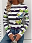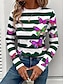 Damen T Shirt Druck Grafik Schmetterling Gestreift Vintage Stilvoll Modern Langarm Rundhalsausschnitt Normale Oberteile Täglich Wochenende Blau Gelb Rote Purpur Herbst Winter