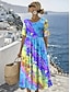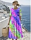 Damen Midikleid Shiftkleid Urlaub Lässig Ferien Lässiger Schnitt Ombre Grafik Schmetterling Kurzarm Rundhalsausschnitt Blau Gelb Rosa Purpur Sommer Frühling
